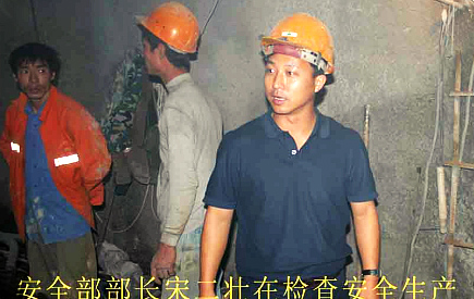 安全部部长宋二壮在检查地下隧道的安全生产